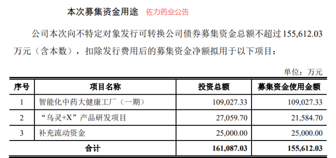 就在2月28日,佐力药业公告称,公司发行可转债申请获得受理。本次募集资金总额不超过15.56亿元,核心用于智能化中药大健康工厂(一期)建设、“乌灵+X”产品研发项目及补充流动资金等。