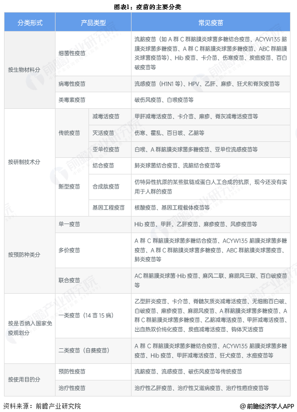 疫苗产品的分类方法多样,有材料、技术、预防种类、国家免疫计划、使用目的等多种分类方法,也可以从这一侧面看出疫苗行业的蓬勃发展。