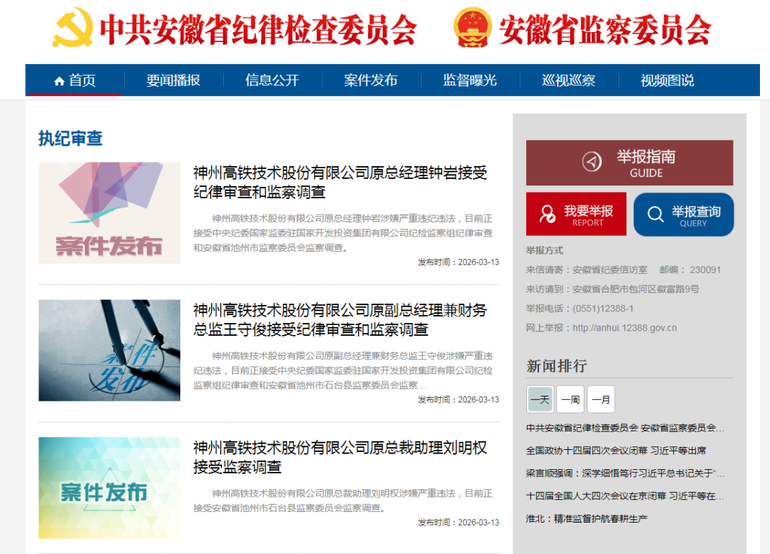 3月13日,安徽纪检监察网发布3则调查案件。