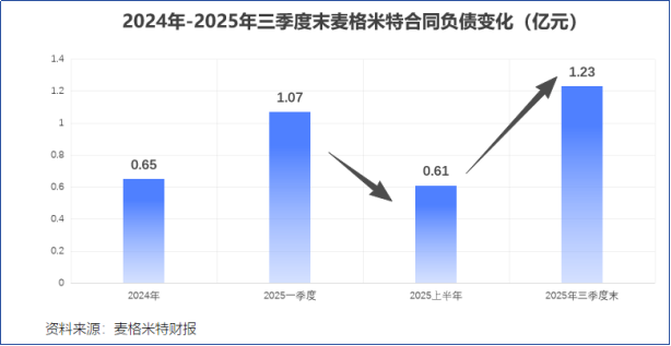 值得注意的是,2025年三月底到上半年末,公司合同负债从1.07亿降至0.61亿,到了三季度末,又快速增长至1.23亿元,翻了一倍。