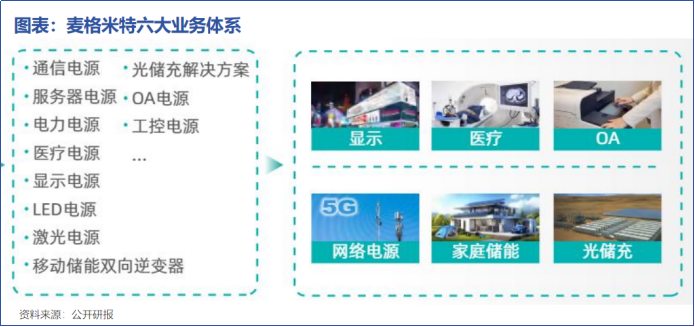 麦格米特旗下有六大业务,分别是智能家电电控、电源产品、新能源及轨道交通部件、工业自动化、智能装备和精密连接。