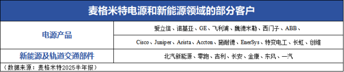 电源领域,思科、爱立信、特变电工、诺基亚等厂商都与麦格米特有合作关系;新能源及轨道交通部件,则北汽新能源、吉利汽车、长安汽车等知名整车厂达成合作……