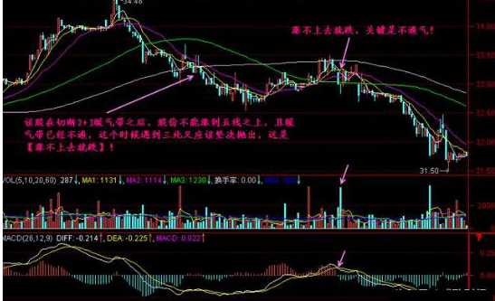 一般情况下,只要暖气带是向上的,则股价容易得到暖气带的支撑而最终向上突破,这就是 “跌不下去就涨”