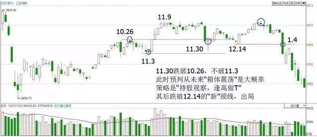 3、调整的低点跌破左方最后一个低点(颈线),即趋势走坏,未来大概率是“N”字调整即调整较深。此时制定跌破减仓,反弹逢高出局的策略。