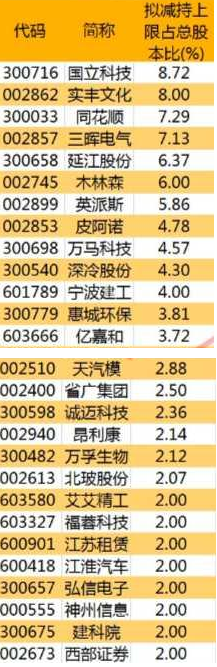 多家公司抛出减持计划:东方财富控股股东的一致行动人沈友根拟减持不超过总股本2%;北斗星通股东国家集成电路产业投资基金拟减持不超2%;汇顶科技股东国家集成电路产业投资基金拟减持不超过1%;中国人保股东社保基金计划减持不超2%公司股份;太极实业股东国家集成电路产业投资基金拟减持不超过1.5%。