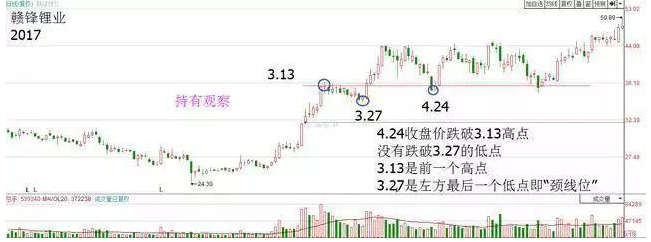 1、调整低点没有跌破前一个高点,即强势调整,多方的逼空走势。未来趋势大概率会再创新高,此时持股待涨的策略。