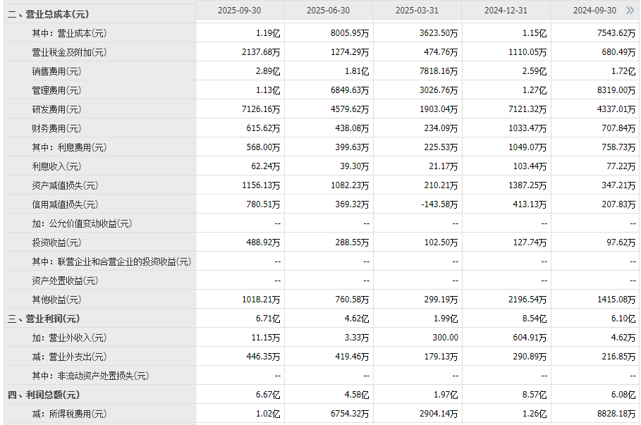 公司的销售费用以及研发费用,2025年前三季度公司销售费用2.89亿较去年同期1.72亿大幅同比增长68%,研发费用0.72亿较去年同期0.43亿同比大幅增长67%;