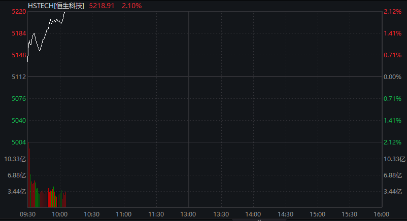 恒生科技指数涨幅扩大至2%,零跑汽车涨超5%,理想汽车、美团涨近4%。
