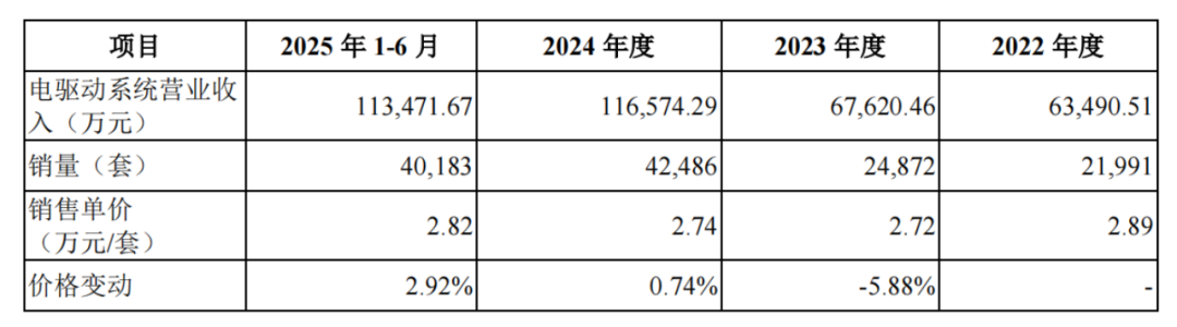 期内,公司电驱动系统的平均销售单价分别为2.89万元/套、2.72万元/套、2.74万元/套和2.82万元/套,整体保持稳定。