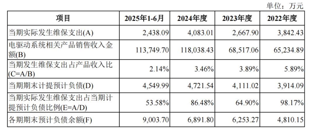 回复函显示,公司期内实际发生的维保费用占销售收入的比例持续下降,各期分别为5.89%、3.89%、3.46%及2.14%,自2023 年起占比低于4%,各期实际发生维保支出小于当期计提预计负债金额。