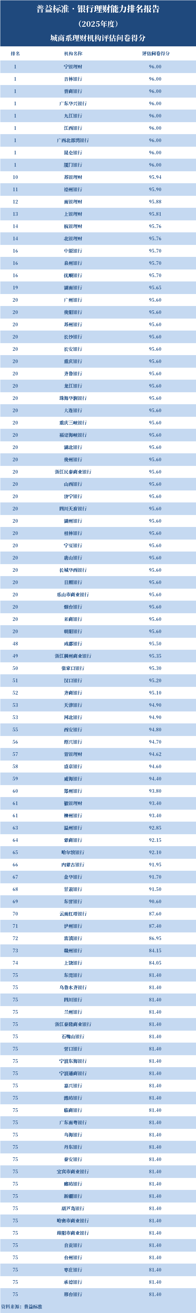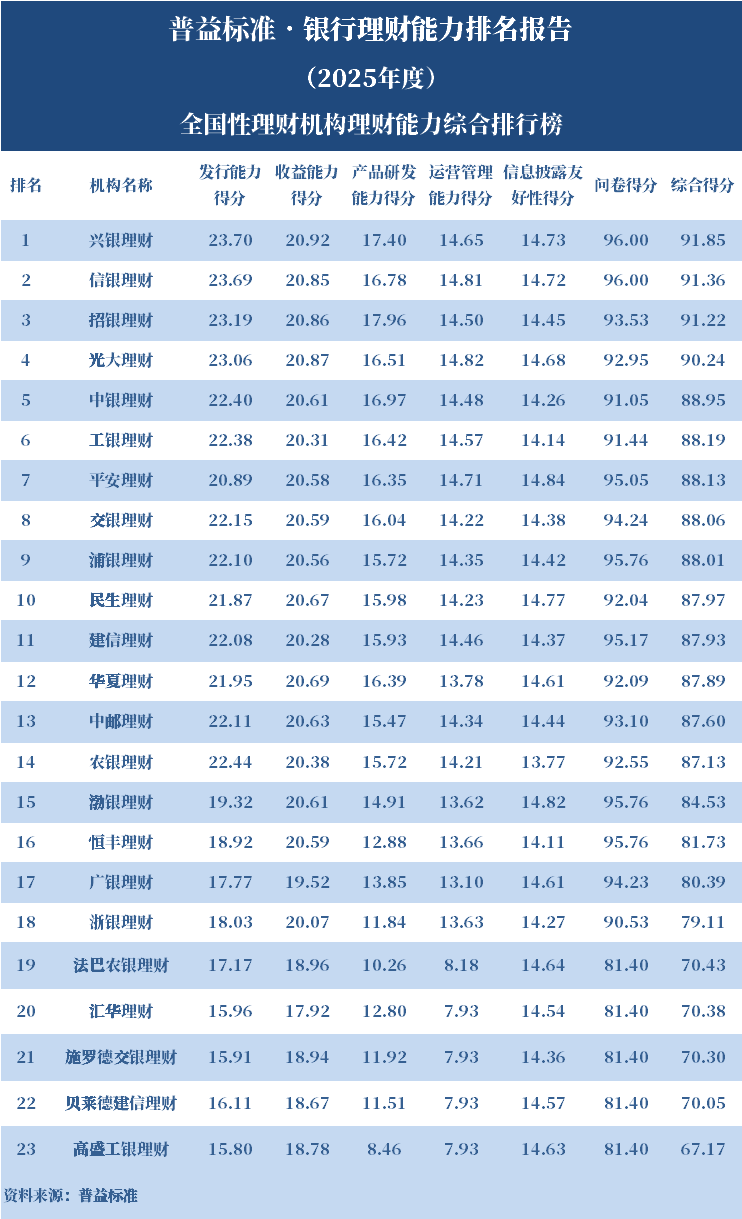 2025年度,银行理财能力综合排名和单项排名结果如下:
