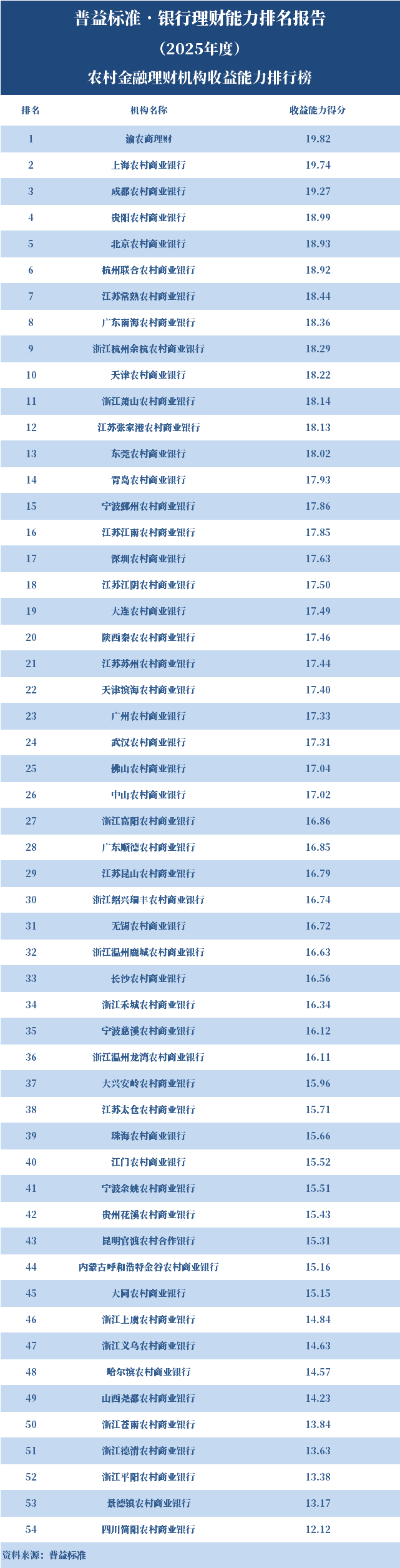 表1:银行理财能力综合排行榜(2025年度)
