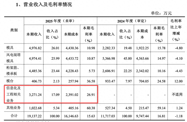 其中,模具收入同比增118.06%,但毛利率降4.8%,因新型钢模板等销售增加,却受行业竞争影响单价降约14%;风电混塔模具收入减7.31%、毛利率降4.10%,系行业竞争加剧,虽销量增10%但单价走低;桁架筋、楼承板收入增72.06%、毛利率降4.43%,源于楼承板占比提升且其毛利率偏低,叠加行业竞争导致单价降约10%。