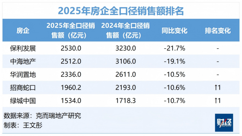 2025年,招商蛇口签约销售金额为1960.1亿元,同比下滑10.6%,较2021年巅峰时期跌去40%。但在房企销售普遍遇冷的背景下,2025年招商蛇口的全口径销售额跻身前四,比2024年提高一名。