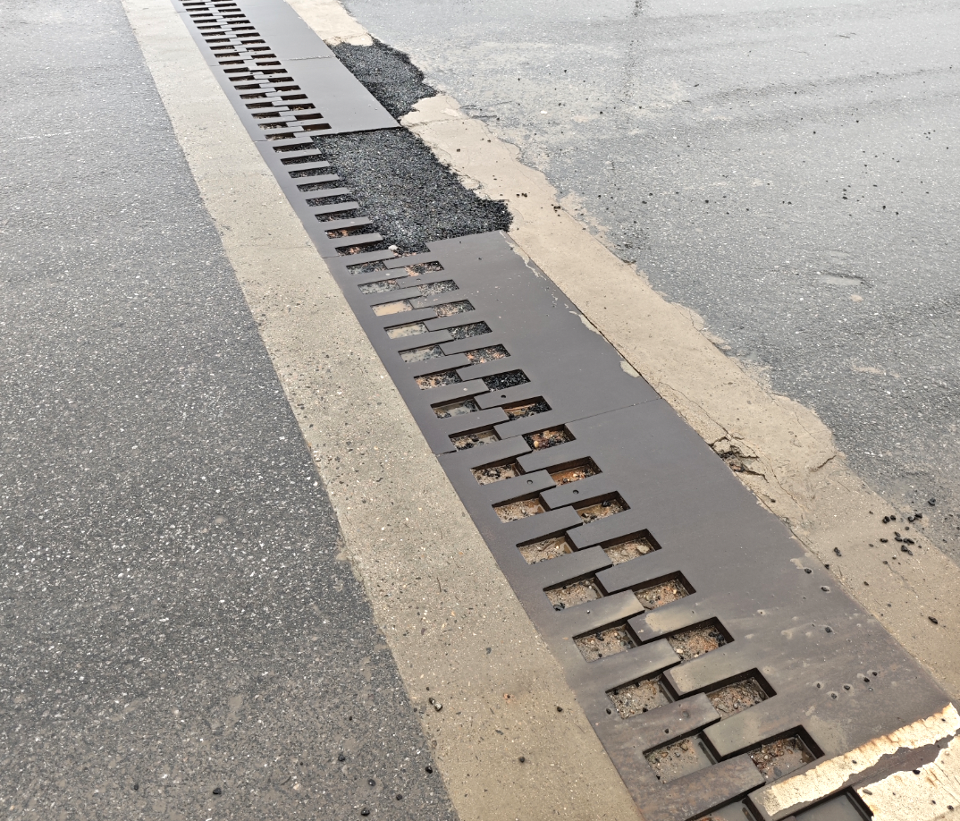 金龙大桥桥面伸缩缝处一块厚重的钢梳齿状板