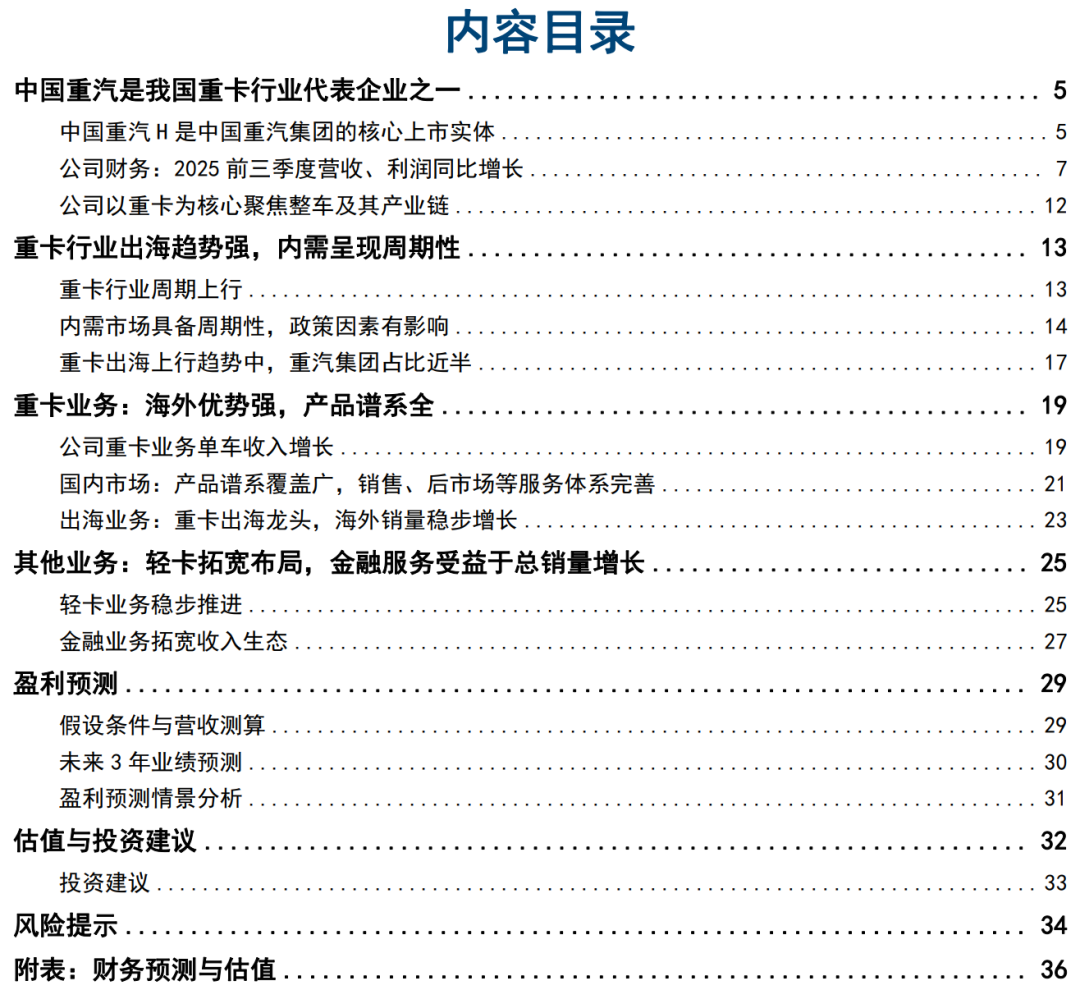 详细内容请见国信证券汽车团队2026年3月3日发布的深度报告《中国重汽H(03808.HK)-重卡行业龙头,出海领域标杆》