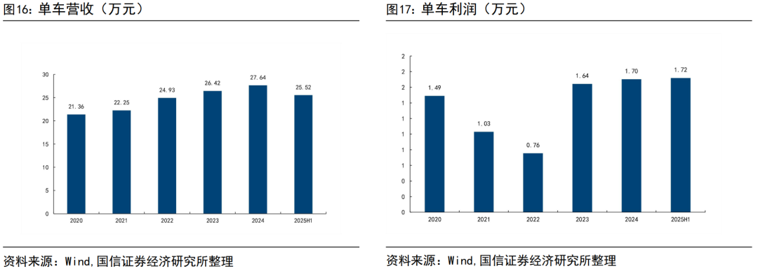 公司单车营收整体上涨,单车利润创新高。以总销量为口径,公司单车营收在2020年来整体呈现上升,2025年H1有所下降,不同产品和不同区域的销量结构有影响。得益于出海业务的发展,单车利润迈上新台阶。