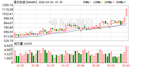 机构净卖出的个股中,金额最多的是源杰科技(688498.SH),当日收盘上涨17.37%,换手率为7.26%。