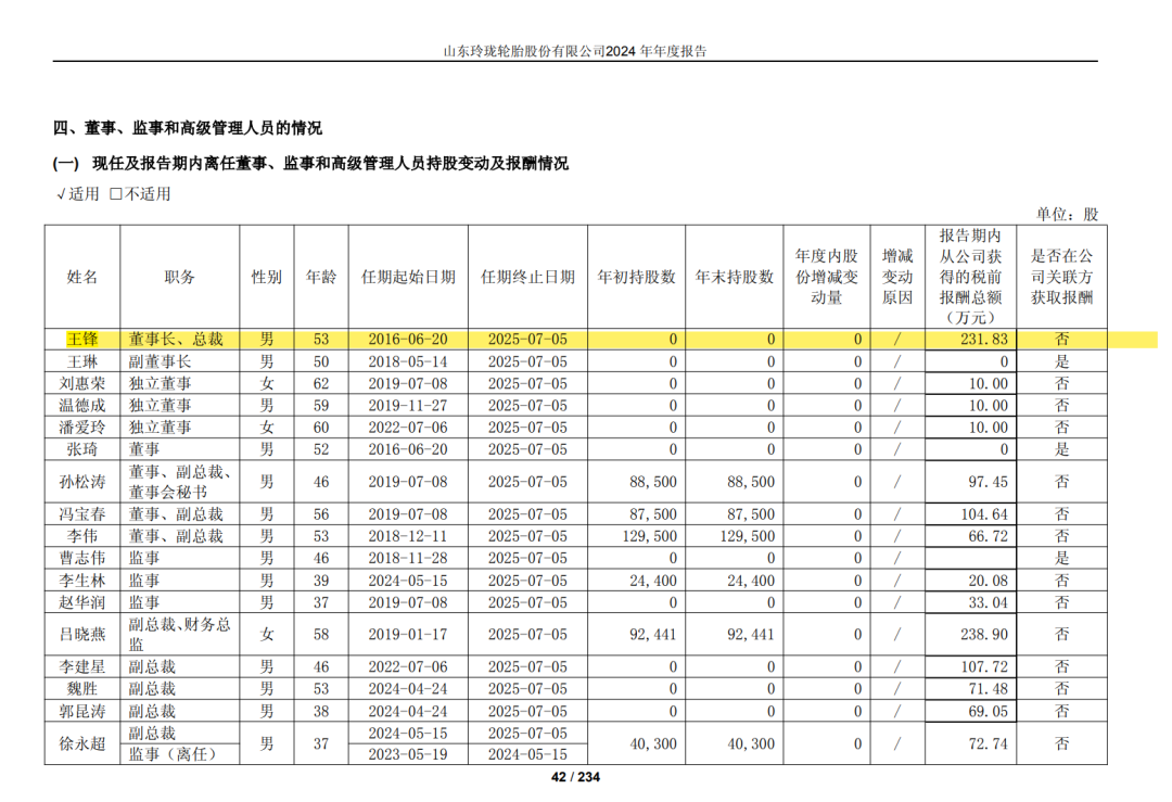 山东玲珑轮胎股份有限公司董事会