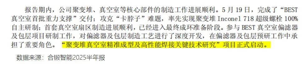 据中报表述,2025年5月19日,公司完成了“BEST真空室首批重力支撑”交付,首套真空值扇区制造进展也很顺利,已经进入最终成环准备环节。