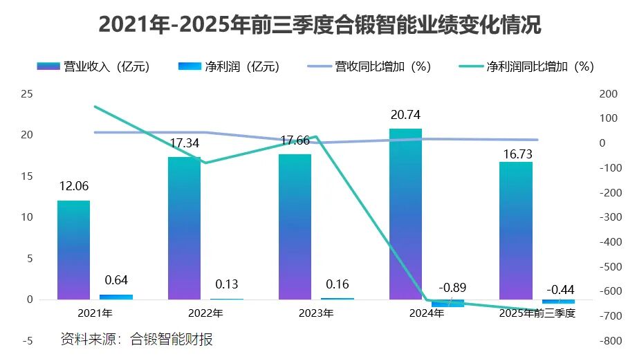 2024年,公司净利润为-0.9亿元,后面亏损局面不仅没改变,还出现愈演愈烈的情形。合锻智能在业绩预告中表述,预计2025年公司净利润亏损区间在-1.8亿到-2.6亿元,与上年相较,同比减少102.27%到192.17%。