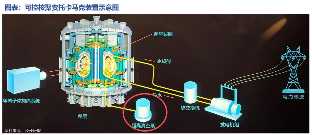 氘氚等燃料被加热到上亿度后,形成能发生聚变反应的高温等离子体,这些等离子体需要被约束在真空腔体内部,才能进行持续反应。