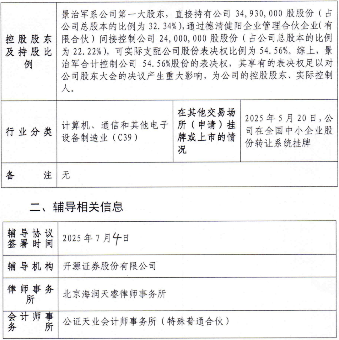 2025年7月,公司在北京证监局办理辅导备案登记,拟向不特定合格投资者公开发行股票并在北交所上市,辅导券商为开源证券。