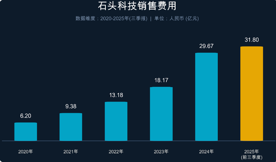 而为了维持销量的快速增长,石头科技不断砸钱做营销,2025年前三季度,其销售费用高达31.80亿元,同比暴涨103.42%,远超72.22%的营收增速。销售费用率从2023年的19.79%攀升至2025年三季度末的26.35%。这意味着,公司每赚取100元收入,就有超过26元要重新投入到广告、明星代言和渠道铺设中,而留存到净利润的只有8.6元,这种“烧钱换规模”的模式不断侵蚀石头科技的净利润。
