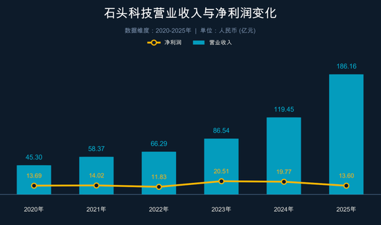 值得注意的是,尽管营业收入高歌猛进,但石头科技的净利润已经大幅下滑,2025年石头科技实现归母净利润13.60亿元,同比下滑31.19%,实现扣非归母净利润10.87亿元,同比下滑32.90%,这一净利润水平比其2020年上市当年的净利润还要略低,2020年石头科技实现净利润13.69亿元,而当年的营业收入仅为45.30亿元。