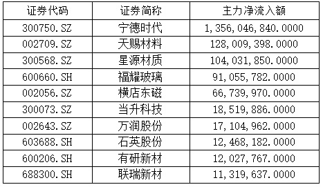 主力净流入额前十