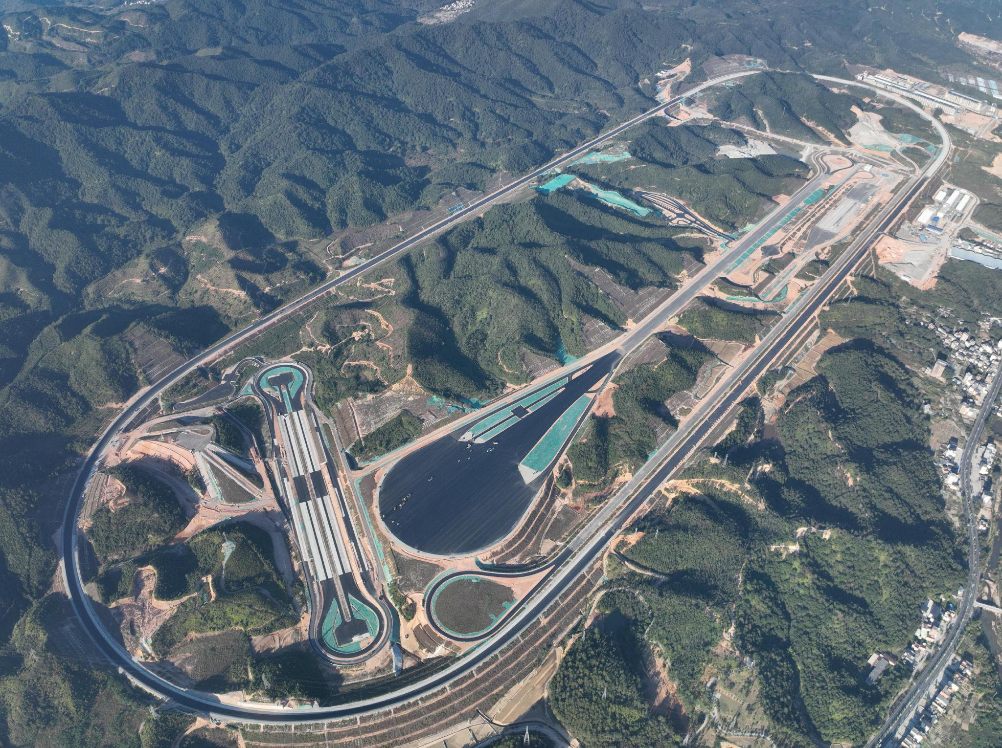 地面上,南方试验场占地8600亩,相当于800多个足球场。场地内,建设有8.5公里长的高速环道、能玩漂移的动态广场,还有专门的飞机滑行跑道和垂直起降点。