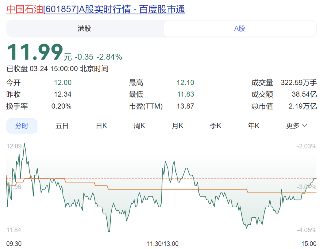 油气股下挫 “三桶油”齐跌