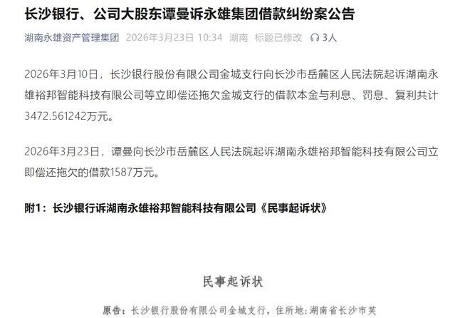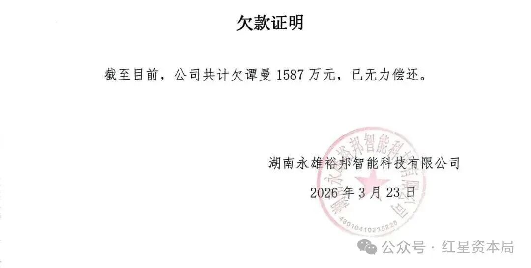 2026年3月10日,已更名为湖南永雄裕邦智能科技有限公司的永雄集团,接连遭遇银行诉讼与创始人起诉,债务危机全面爆发。