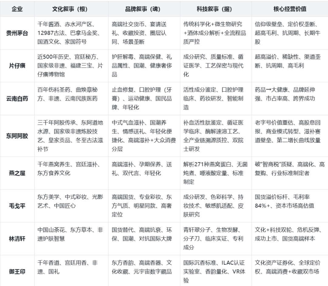 比如说茅台也有三大叙事,文化叙事讲家国符号和稀缺根脉,品牌叙事讲圈层认同和场景垄断,科技叙事讲传统工艺的科学化跟品质严控。