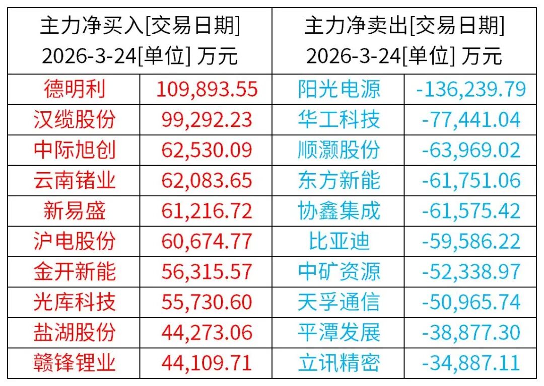 前一交易日主力资金动向