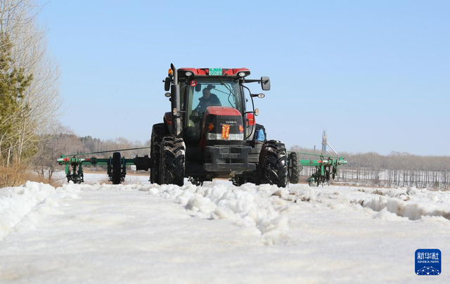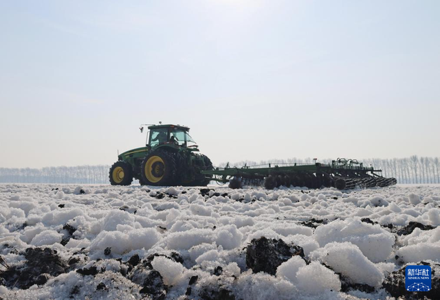 3月24日,北大荒集团北安分公司红星农场有限公司第二管理区有机小麦地块,大马力机车在进行耙雪散墒作业。 近日,黑龙江垦区北大荒集团部分农业生产单位抢抓农时,组织开展机械耙雪散墒作业,有效提升积雪融化速度,为整地、播种创造有利条件。 新华社发(钱泊羽摄)