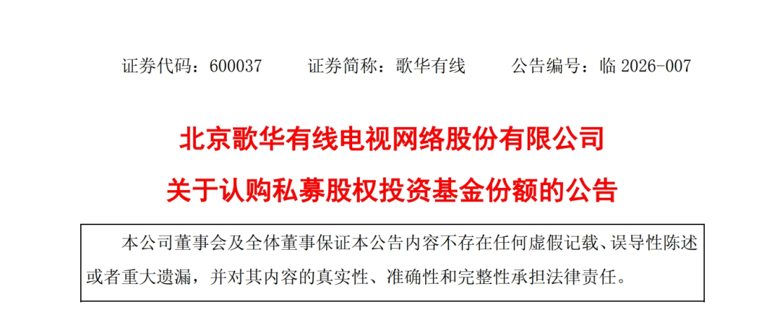 中广互联注意到,歌华有线作为出资方,认缴出资1亿元,占基金总规模的5%。