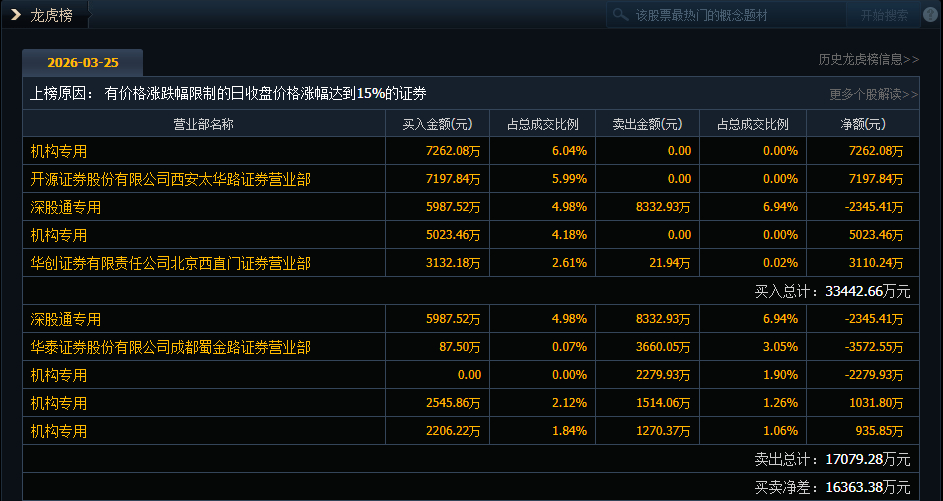 唯科科技(301196)今日20cm涨停,成交额12.01亿元,换手率14.43%,盘后龙虎榜数据显示,深股通专用席位买入5987.52万元并卖出8332.93万元,4家机构专用席位净买入1.43亿元,有1家机构专用席位净卖出2279.93万元。