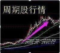 牛市当中周期股是紧接着权重股的力度,进行把大盘继续推高,助力大盘进入真正的加速牛市的功效;所以当权重股走高之后,周期股中的地产、有色、建材、水泥、钢铁、煤炭、电力等等的个股进行大幅拉升,牛市中将由周期股的拉升推高至牛市加速期;(2014年10月~2015年1月周期行情)