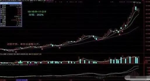 2、 “单阳不破”最后的上升时间不能拖过第9根K线,若果第9根K线依旧盘整,那么在第11根K线开始引发趋势急速下跌可能性较大,即当涨不涨,不涨则落。可以引申为:“在重要的上涨时间内,趋势没有应时上涨,时间一过跌势即将跟来。”