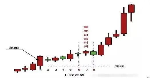 单阳不破,形态上的单阳指的是攻击性大阳线(量度跌幅上达到7%以上即可)。大阳线通常是主力行为的一种表现,散户往往没有办法造成个股出现大阳线。如果大阳线出现之后,出现抗跌或跌不动的走势,就说明了市场内在的上升力度强劲。那么会在回调到6到8根K线周期之内,经常会引发新的一轮暴涨。即使走势失败了,也能够顺利出局,风险极小。