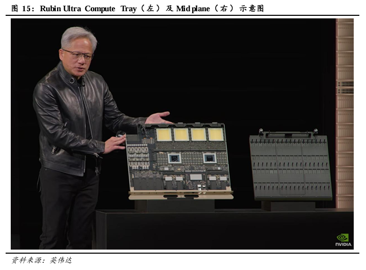 2)Kyber Mid-plane 技术路线确定性提高。GTC 2026大会上展出Kyber机架下的Compute Tray、Mid-plane、Switch Tray,使用PCB进行正交连接的确定性提高,PCB价值有望进一步增长。