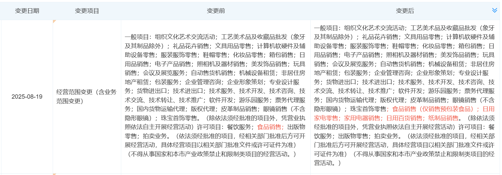 同年8月,北京泡泡玛特文化创意有限公司完成工商变更,经营范围新增日用家电零售、家用电器销售等,为家电业务落地做好资质准备。