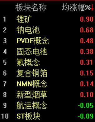 板块方面,能源金属、电池、锂矿概念、小家电概念涨幅居前,地面兵装、保险、光伏设备、航海装备、VPN表现不佳,领跌市场。