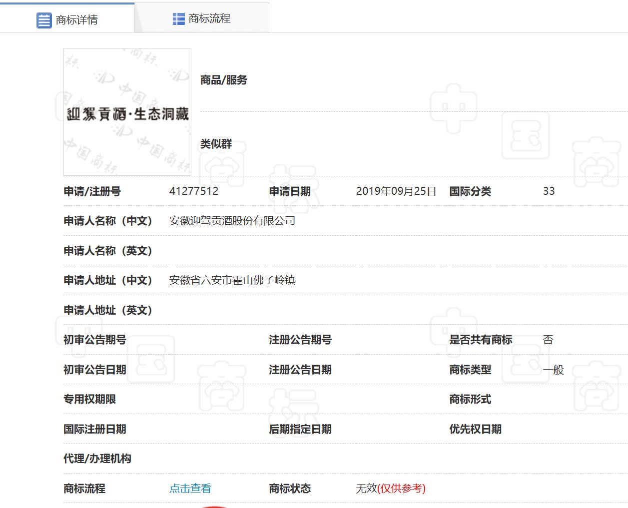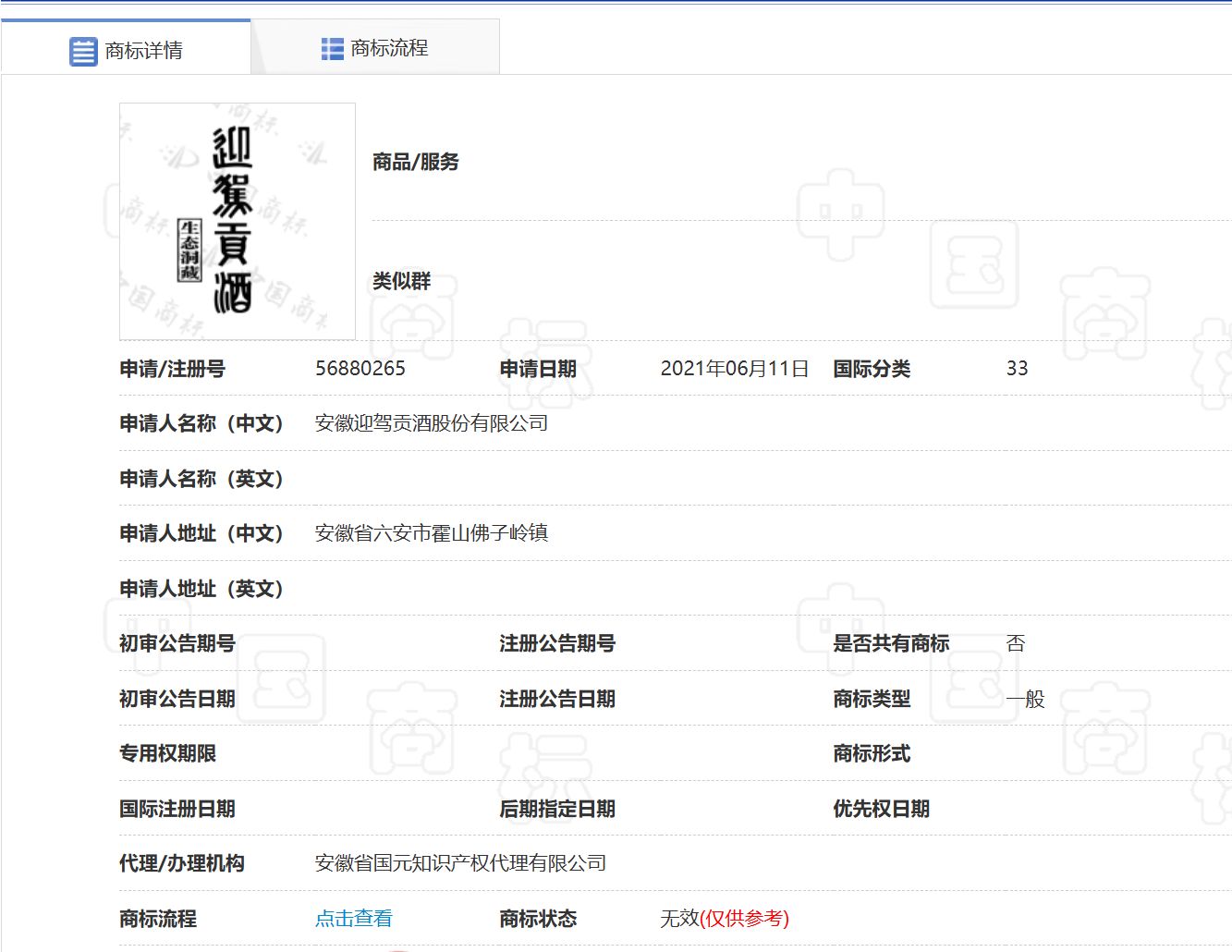 不过,“迎驾贡酒生态洞藏”商标状态是“无效”。2019年、2021年,迎驾贡酒两次申请均被驳回;此外,2020年,公司申请的“生态迎驾”商标也被驳回。