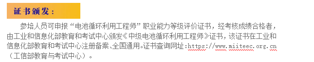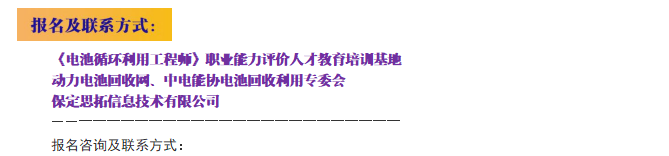 中国电子节能技术协会电池回收利用委员会、动力电池回收网和工信部教考中心特推出《电池循环利用工程师》职业能力等级评价证书取证研修班。现面向全国招生,特邀请新能源产业链和有意进入电池回收利用产业的相关人员参加。