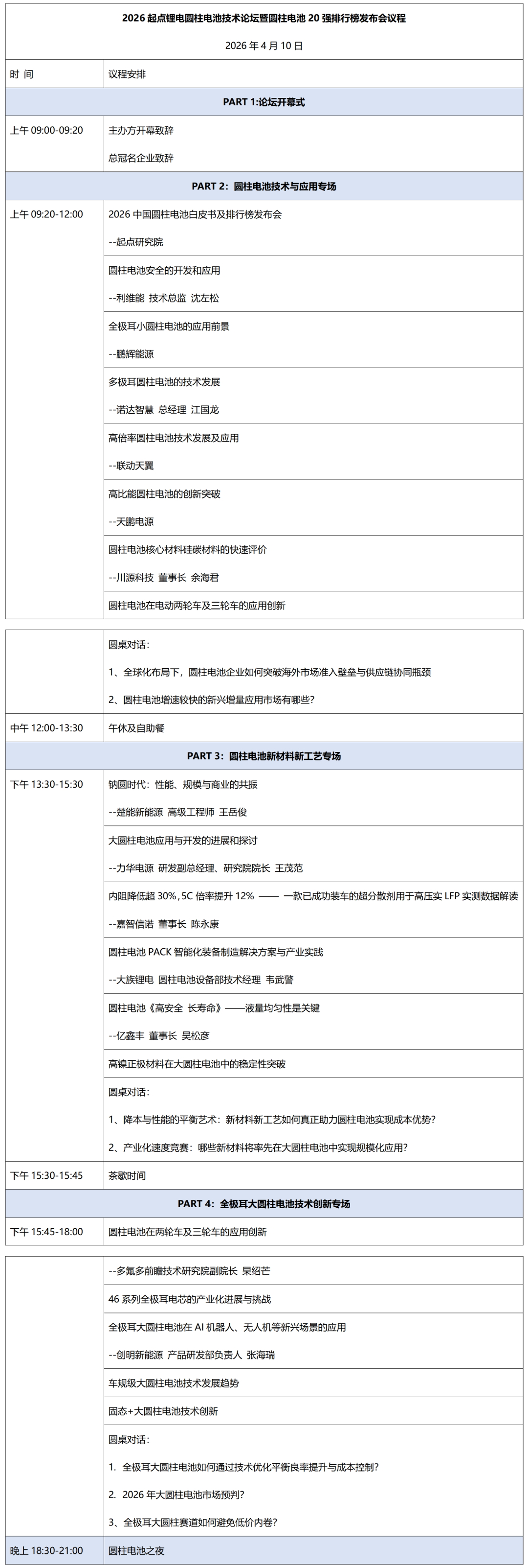 活动名称:2026(第二届)起点锂电圆柱电池技术论坛暨圆柱电池20强排行榜发布会