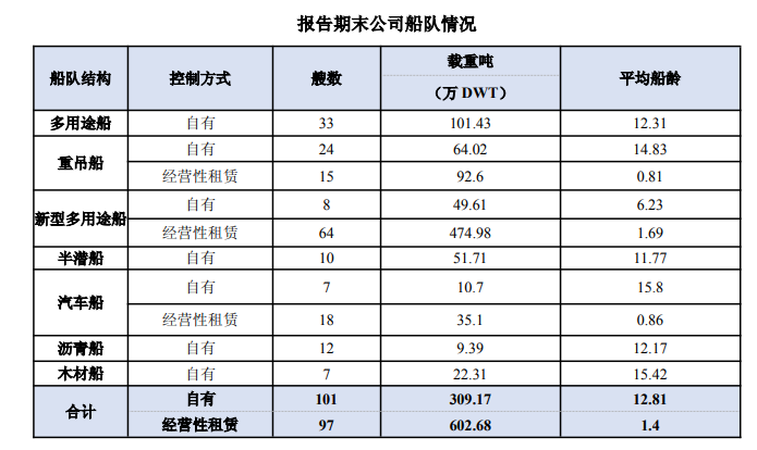 截至2025年底,公司自有及经营性租赁船舶合计达到198艘,控制运力规模达到911.85万载重吨。