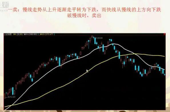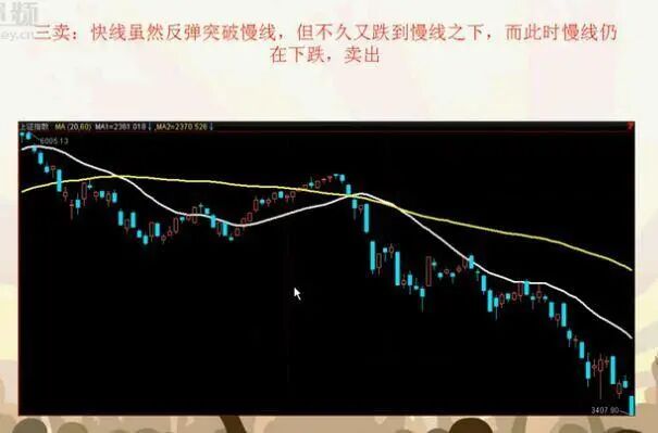 一卖:慢线走势从上升逐渐走平转为下跌,而快线从慢线的上方向下跌破慢线时,卖出