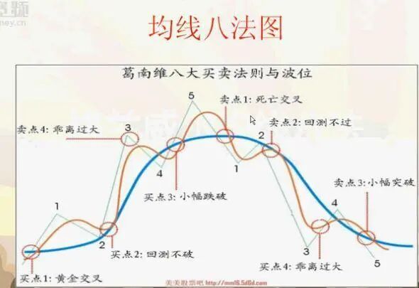 均线八大法则在当今证券市场负有盛名,它是美国著名投资大师格兰威尔创造的。出自《每日股票市场获最大利益之战略》一书。所谓均线八大法则,就是利用股价与均线的关系,找出买卖依据,八大法则有四个买点和四个卖点组成。